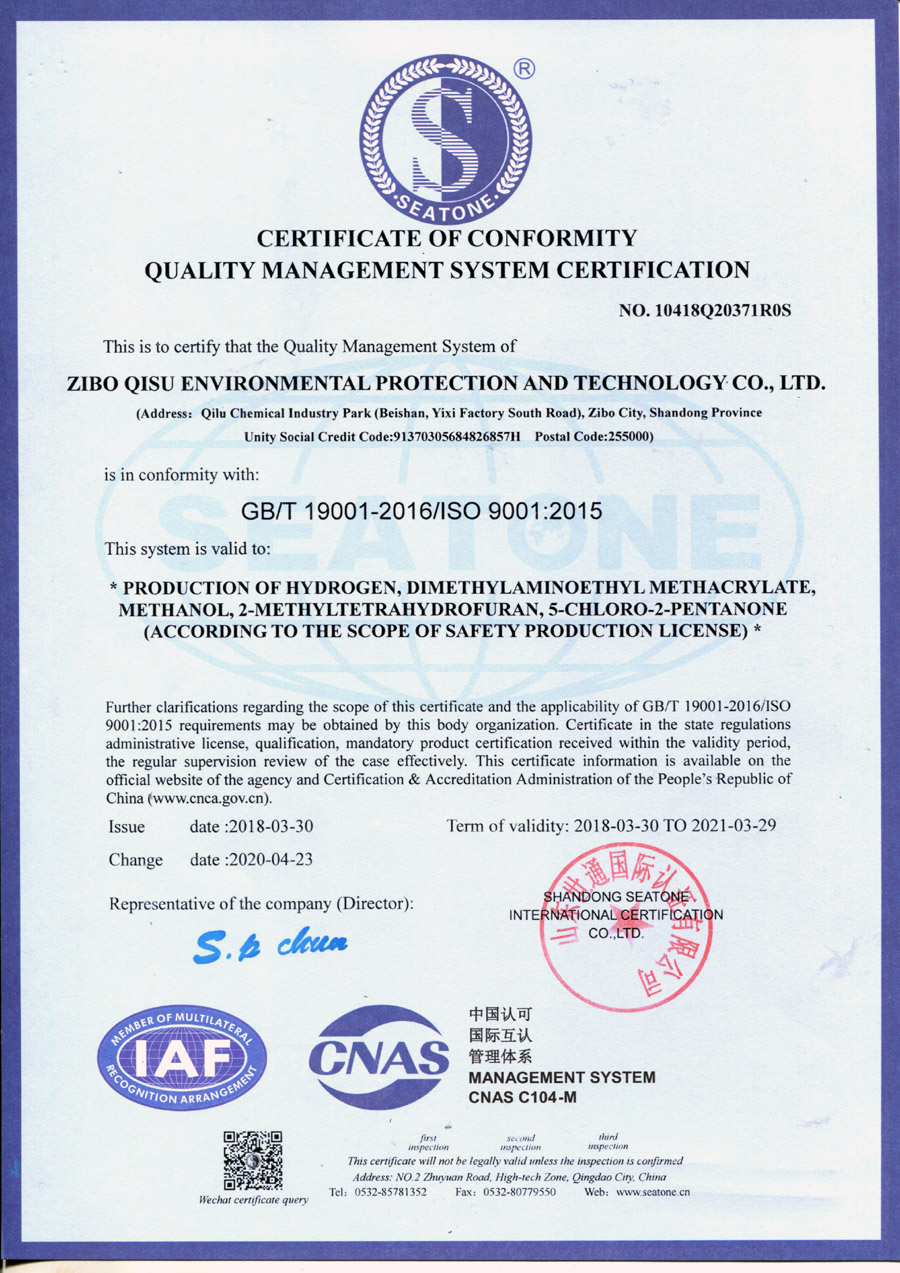 尾氣回收利用生產工藝由天津大學設計,操作系統(tǒng)為DCS操作,原料及產品全部采取管輸方式,2015年被認定為資源綜合利用企業(yè)。2018年3月30日通過國際GB/19001-2016/ISO 9001:2015質量管理體系認證。